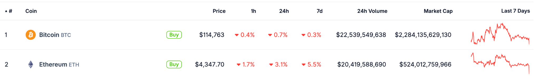 The cryptocurrency market fell in general over the weekend. Based on CoinGecko market data, ETH fell below $4,400, now at $4,347.70, down 3.1% in 24h. BTC is now at $114,763, down 0.7% in 24h. On the other hand, BNB made new record highs at $1,080, now at $1,042.20, down 3.9% in 24.