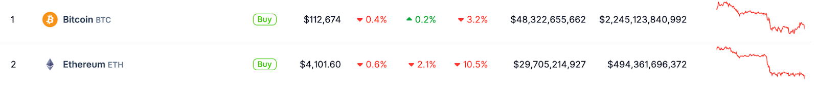 The cryptocurrency market continues to fall. Based on CoinGecko market data, ETH falls below $4,100 again, now at $4,101.60, down 2.1% in 24h, and a combined 10.5% in 7d. BTC meanwhile is now at $112,674, up 0.2% in 24h, and down 3.2% in 7d.