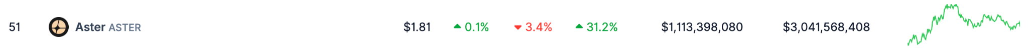 Meanwhile, trending tokens XPL and ASTER underwent a correction, XPL is now at $1.39, down 15.5% in 24h. ASTER is at $1.81, down 3.4% in 24h.