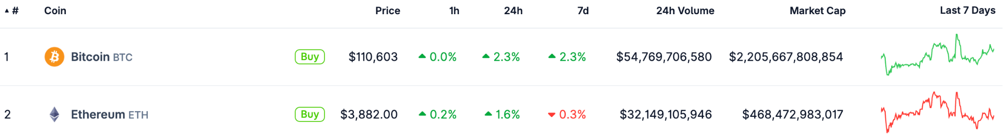 US president Trump has pardoned Binance’s Changpeng Zhao, and with that news BNB rose 4.5% in 24h, now at $1,132.24. Meanwhile, BTC is at $110,603, up 2.3% in 24h. ETH is now at $3,882, up 1.6% in 24h.